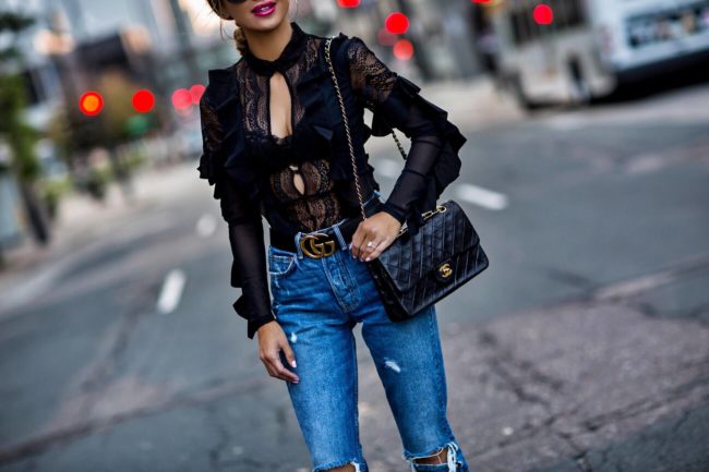 Bralettes are my go-to for day-to-day. I love how comfortable they are and I like the look of a hint of lace peeping out of tanks and basic tees. I layered a lace bralette under this lace bodysuit (worn above). I debated wearing pasties since the cut is so low, but I thought that might feel too revealing. Matching lace under lace makes this bralette feel like it’s part of the bodysuit. This is my favorite lace bralette (which I stocked up on because it’s so cheap!). I’ve also been wearing this one a lot lately because I love the thick lace straps which look great under a cami.