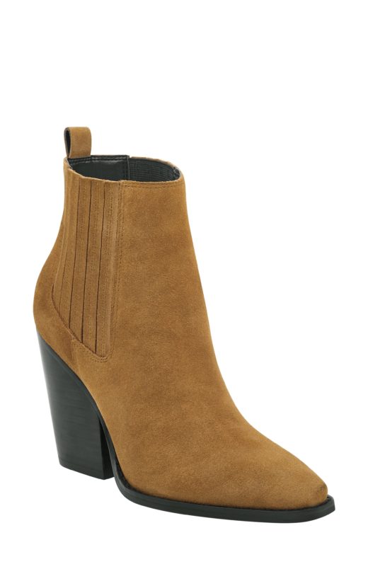 For a dressier ankle boot that you can wear with more sophisticated ensembles, go with a pointed toe bootie. This one is only $60!