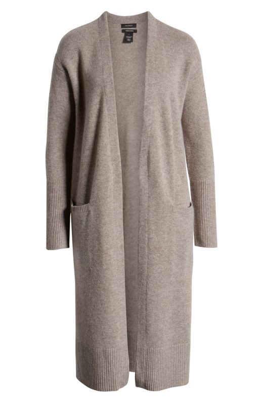 This cozy cardigan is great for layering and it's reasonably priced for being 100% cashmere. It can be worn opened or belted, making it ideal for any look.