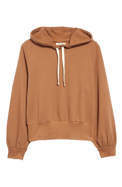 This hoodie feels dressier with the voluminous bubble sleeves and cropped waist. I love that it looks equally chic with jeans or sweatpants.