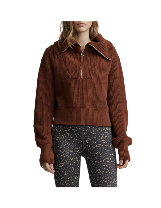 Finally, there’s the ubiquitous half-zip pullover. Other variations include the henley sweater and knitted polo – all of which I love! They’re casual yet cool and look especially chic dressed down with sweatpants or yoga pants.
