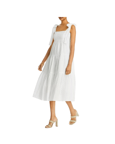 Bow-tie straps and an allover eyelet design level up this simple white dress. The easy silhouette is exactly what you want for a long day of celebrations.
