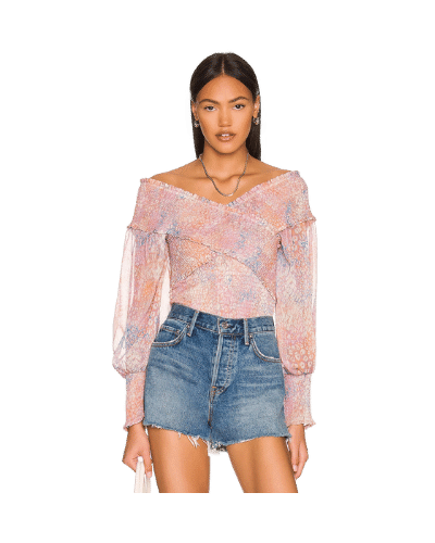 A charming and versatile crop top that features delicate ruching and a wrap-effect neckline for a romantic touch.