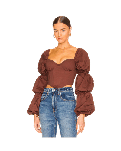 There's so much to love about this showstopping top from the corset bodice to the tiered sleeves and beautiful brown color.