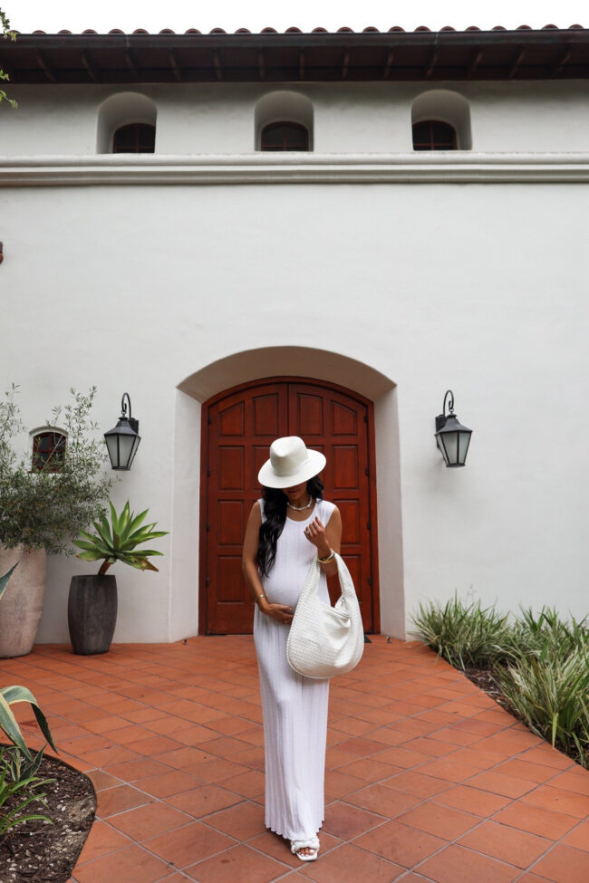 Last month, I had the pleasure of visiting Santa Barbara, one of my favorite getaway spots. The sun-drenched beaches and charming streets are just another world – and they provided the perfect backdrop for some of the maternity outfits I’ve been wearing. These past few weeks, I’ve consistently turned to a mix of easy basics that I already own along with some new pieces that I can rewear next summer. So many of you have been requesting bump-friendly outfits, so I wanted to share the exact pieces I’ve been wearing to stay chic and comfortable. Keep scrolling for a roundup of my favorites!
