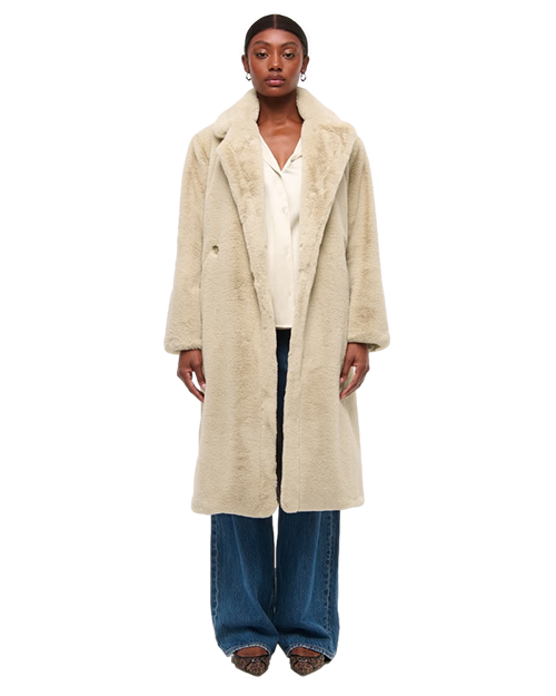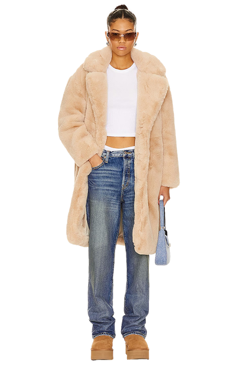 this one is like wrapping yourself in a warm, plush fur blanket - but make it fashion.