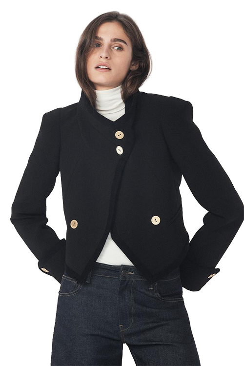Sleek and architectural, this jacket pairs just as well with denim as it does over tailored trousers.