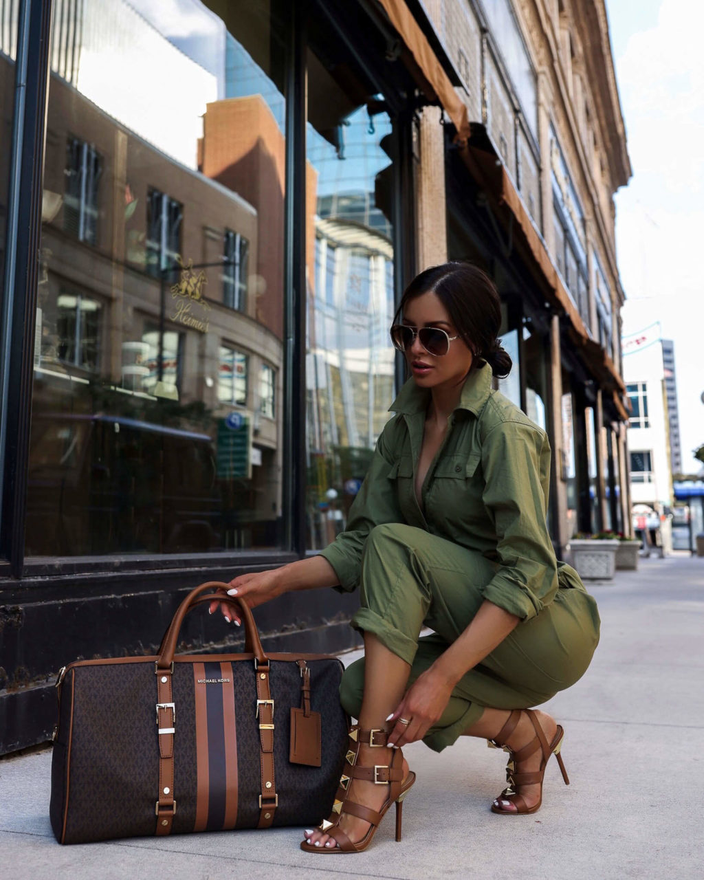 Michael Kors Stretch Organic Cotton Poplin Belted Jumpsuit (wearing an XXS)
