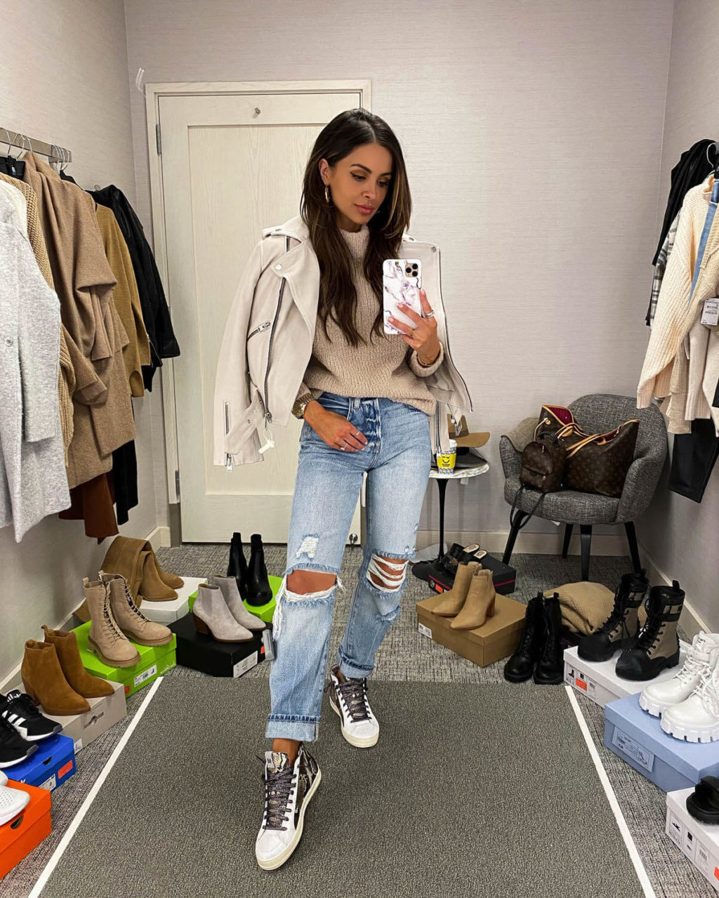 Instagram / 12 Jul, 2021 NSALE Snakeskin Sneakers All Saints White Leather Jacket Vince Tan Sweater Frame Distressed Denim P448 Snakeskin Sneakers view more shop the look Turn on your JavaScript to view content pin this post 0 comments